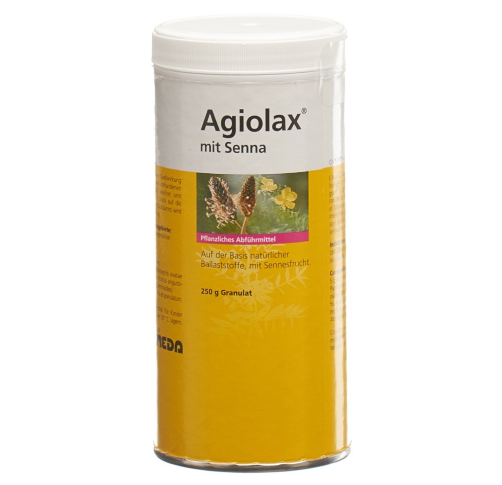 Agiolax avec séné est un laxatif végétal à base de graines de psyllium des Indes (ispaghul) et de fruits de séné. Il s'utilise en traitement à court terme en cas de constipation occasionnelle. Les principes actifs des graines et des téguments de psyllium des Indes (Plantago ovata) agissent en augmentant le volume des selles dans l'intestin. Les composants des granulés gonflent de plusieurs fois leur volume en présence d'eau; ils stimulent ainsi l'activité intestinale et produisent des selles souples et molles. L'extrait de fruits de séné contenu dans les granulés induit un effet laxatif.