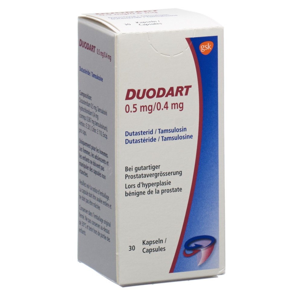 Duodart est un médicament destiné au traitement de l'augmentation bénigne de volume de la prostate (hyperplasie bénigne de la prostate) et contient comme principes actifs du dutastéride et de la tamsulosine.