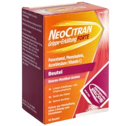 NeoCitran Grippe/Refroidissement FORTE est utilisé pour le soulagement des symptômes de refroidissement et de grippe avec rhume (nez bouché) accompagné de fièvre et/ou de douleurs légères à modérées, notamment maux de gorge, maux de tête, douleurs musculaires et douleurs des sinus.